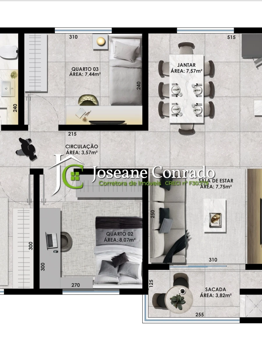 1 suíte + 2 quartos